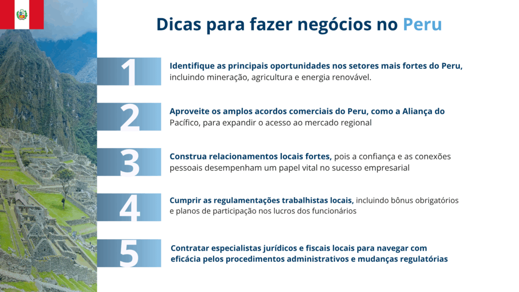 Principais conclusões sobre como fazer negócios no Peru