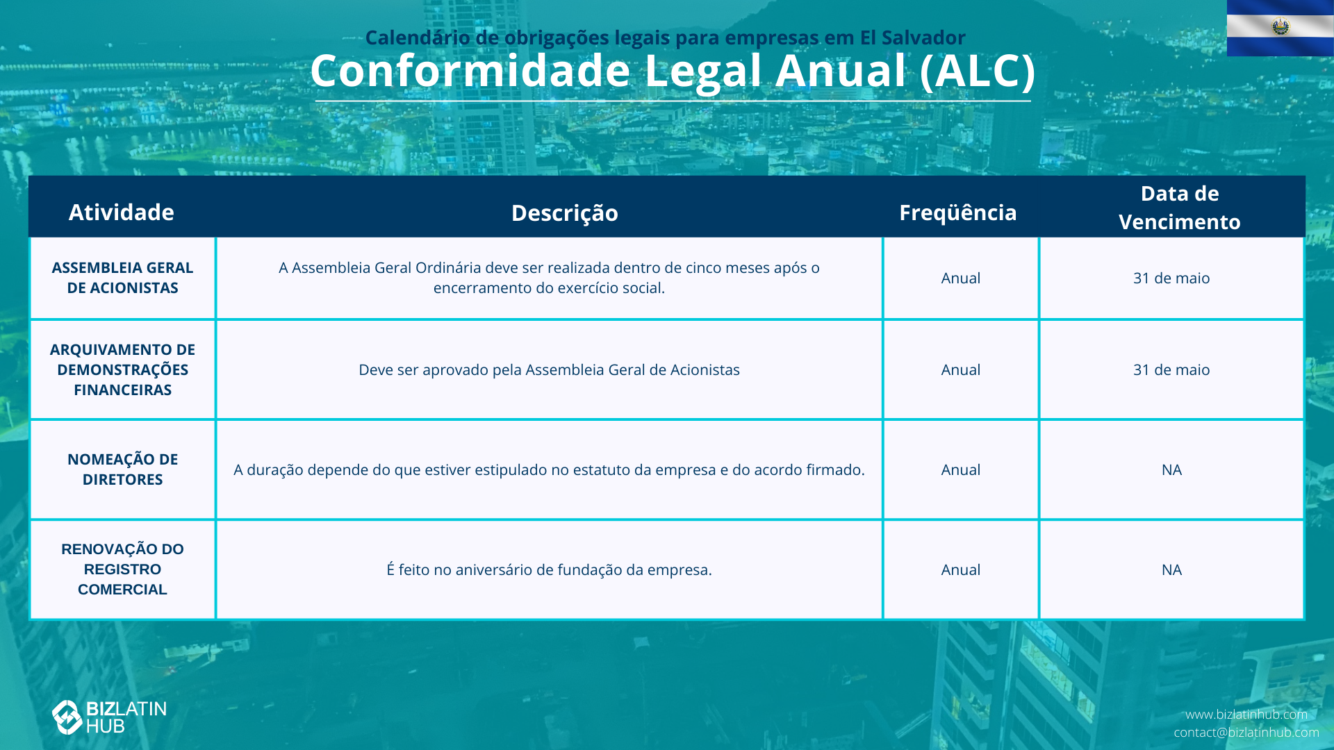 A Biz Latin Hub pode ajudar você com os requisitos corporativos em El Salvador
