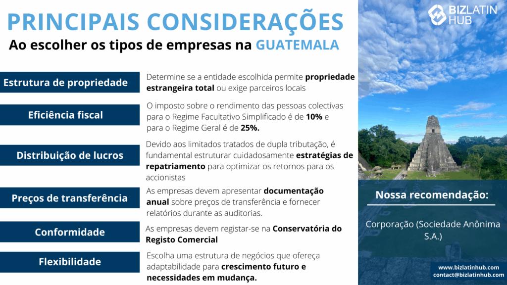 Principais considerações ao escolher os tipos de empresas na Guatemala