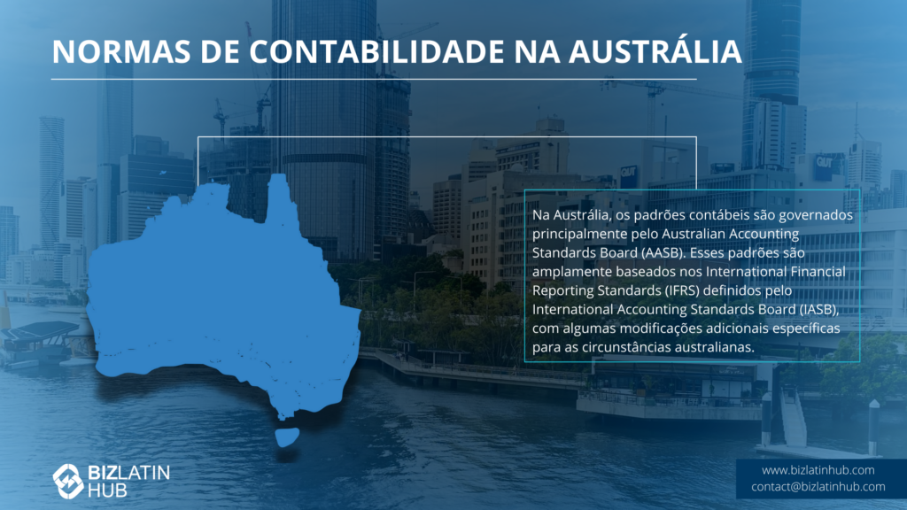 Quais são as normas contábeis na Austrália? | Na Austrália, as normas contábeis são regidas principalmente pelo Australian Accounting Standards Board (AASB). Esses padrões são amplamente baseados nos Padrões Internacionais de Relatórios Financeiros (IFRS) definidos pelo Conselho de Padrões Internacionais de Contabilidade (IASB), com algumas modificações adicionais específicas para as circunstâncias australianas. |