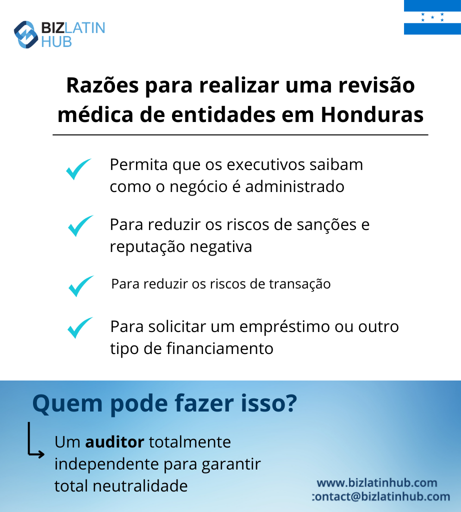 Por que fazer um exame de saúde da entidade em Honduras? | Um exame de saúde identifica e ajuda a reduzir os riscos legais e financeiros. |