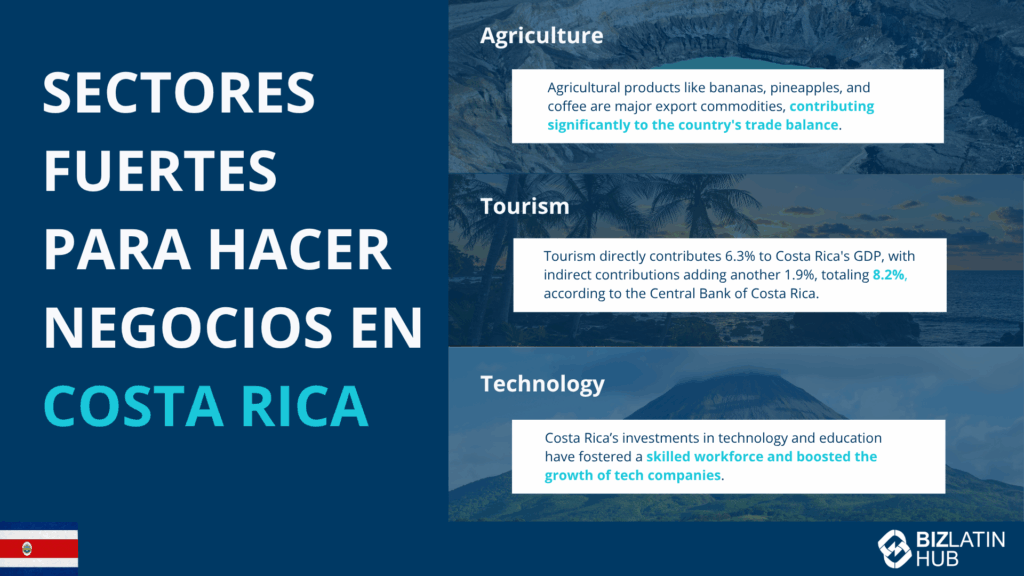 For companies doing business in Costa Rica, top sectors include ecotourism, software development, medical devices, shared services, and sustainable agriculture.