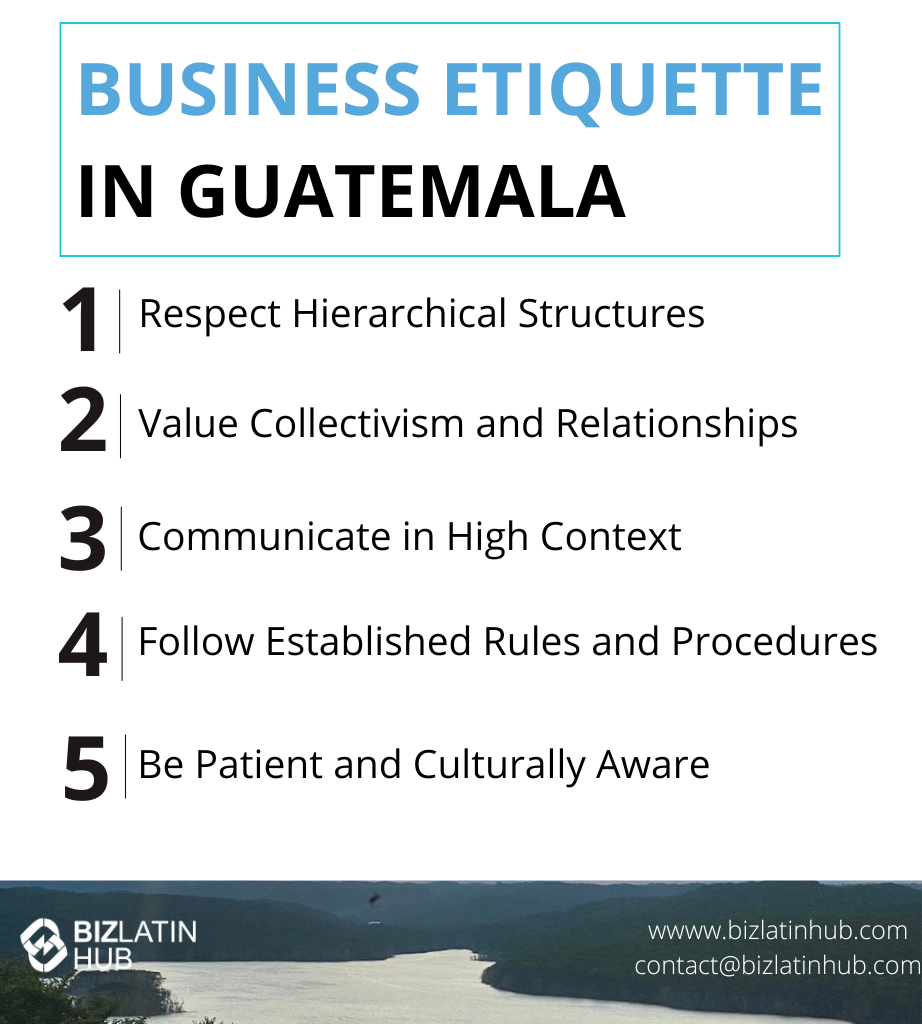 Understanding Guatemala’s business etiquette can become an important part of the long-term success of your business operations. However, we recommend getting support from experts to professionalize your business operations according to Guatemala’s business etiquette standards.