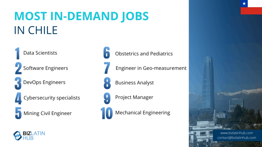 Large and sustained investments in education in Chile over the past decade have paid off. Chile boasts a large and well-educated labor force, and the hiring trends in Chile demonstrate this. There’s no shortage of tech/IT professionals, engineers, business administrators, and legal and marketing professionals in the Latin American country.