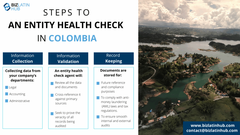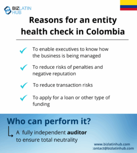 Explore your options to get an entity health check in Colombia, also known as corporate due diligence in Colombia, for your own business or an existing company you may be planning to acquire. An entity health check or legal due diligence after or before company formation in Colombia performed by local professionals allows you to identify compliance gaps, mitigate risks, and concentrate on growing your business with confidence. This guide explains why a proactive compliance audit is a crucial part of good corporate governance and details the primary areas of review for any company in Colombia.